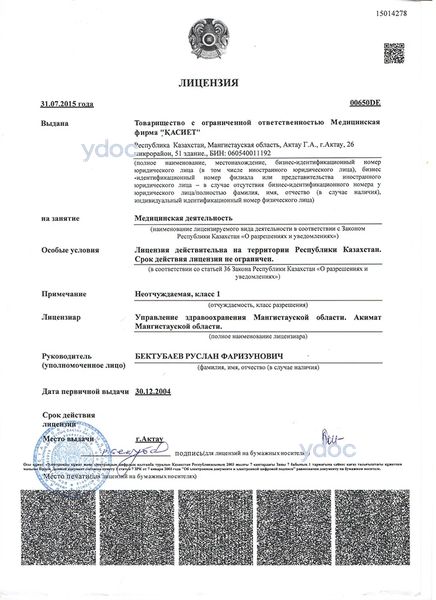 Клиника «Касиет», Актау: 20 врачей, 1 отзыв о клинике и ее врачах, телефон, официальный сайт, адрес - Актау, мкр. 26, д. 55.