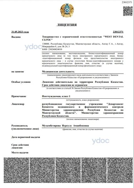 Стоматология «West dental clinic» (Вест дентал клиник) в микрорайоне 6, Актау: 1 врач, отзывы о клинике и ее врачах, телефон, официальный сайт, адрес - Актау, мкр. 6, д. 24.
