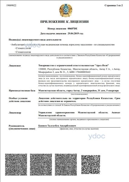 Стоматология «Apex-Dent» (Апекс-Дент), Актау: 3 врача, отзывы о клинике и ее врачах, телефон, официальный сайт, адрес - Актау, мкр. 2, д. 31.