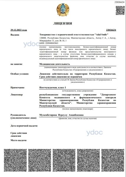 Стоматология «Adal Smile» (Адал Смайл), Актау: 1 врач, отзывы о клинике и ее врачах, телефон, официальный сайт, адрес - Актау, мкр. 13, д. 1Б.
