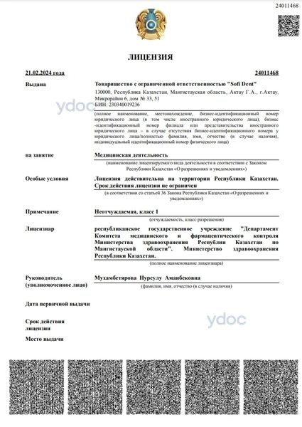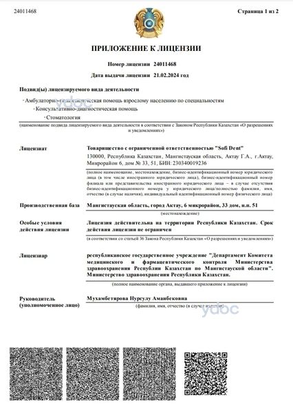 Стоматология «Sofi Dent» (Софи Дент), Актау: 1 врач, отзывы о клинике и ее врачах, телефон, официальный сайт, адрес - Актау, мкр. 6, д. 33.