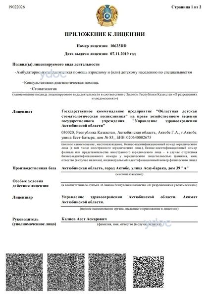 Областная детская стоматологическая поликлиника на Асау-Барака, Актобе: врачи, отзывы о клинике и ее врачах, телефон, официальный сайт, адрес - Актобе, ул. Асау-Барака, д. 39А.