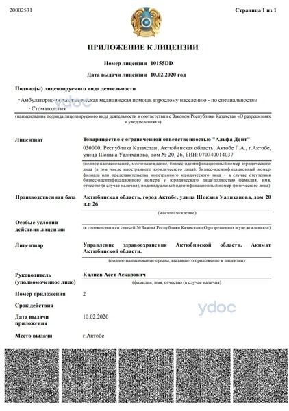 Стоматология «Alfa Dent» (Альфа Дент), Актобе: врачи, отзывы о клинике и ее врачах, телефон, официальный сайт, адрес - Актобе, ул. Шокана Уалиханова, д. 20.