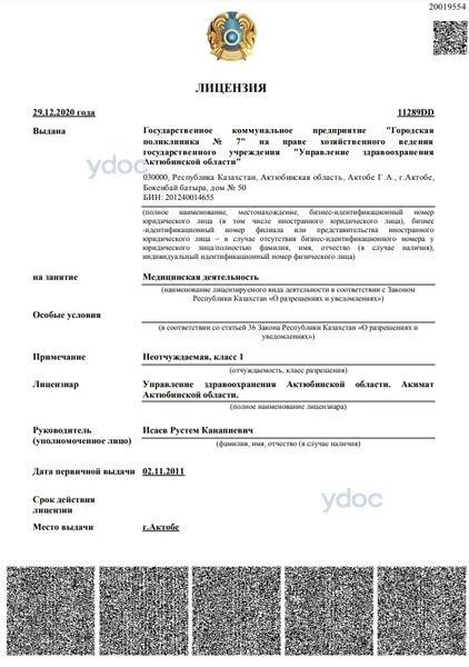 ГКП «Городская поликлиника №7» на ПХВ ГУ «Управление здравоохранения Актюбинской области»