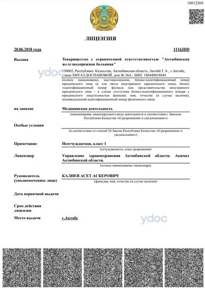 Актюбинская железнодорожная больница, Актобе: 30 врачей, 1 отзыв о клинике и ее врачах, телефон, официальный сайт, адрес - Актобе, ул. Хиуаз Доспановой, д. 36А.