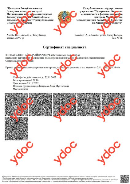 Зинатуллин Айнур Айдарович, Актобе: офтальмолог-хирург, 67 отзывов пациентов, места работы, стаж 10 лет.