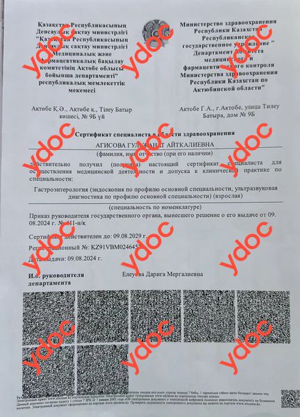 Агисова Гульжанат Айткалиевна, Актобе: гастроэнтеролог, 1 отзыв пациентов, места работы, стаж 30 лет.