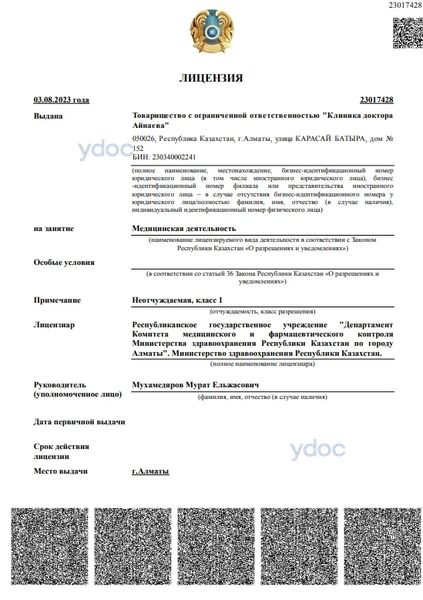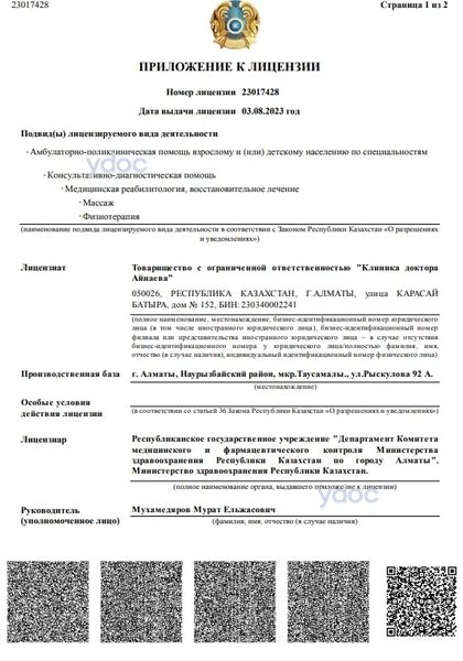 Медицинский центр «Dr. Ainayev» (Доктор Айнаев), Алматы: 6 врачей, отзывы о клинике и ее врачах, телефон, официальный сайт, адрес - Алматы, ул. Рыскулова, д. 92А.