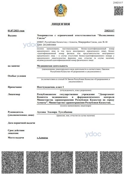 Клиника «Емхана Саялы» (Поликлиника Саялы), Алматы: врачи, отзывы о клинике и ее врачах, телефон, официальный сайт, адрес - Алматы, ул. Ак-Кайнар, д. 43/1.