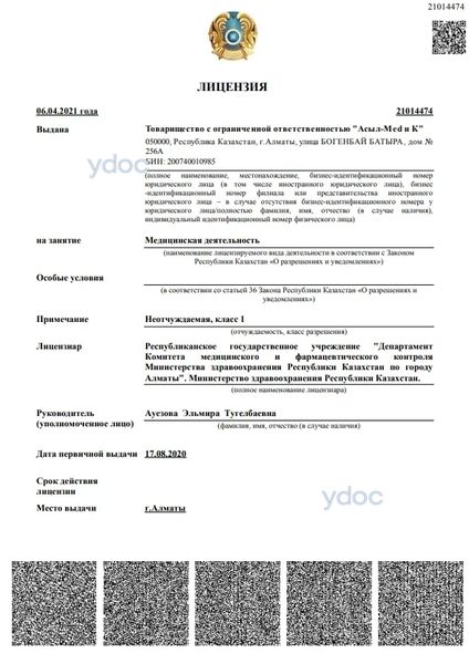 Медицинский центр «Асыл-Med и К», Алматы: 5 врачей, отзывы о клинике и ее врачах, телефон, официальный сайт, адрес - Алматы, ул. Богенбай батыра, д. 256А.