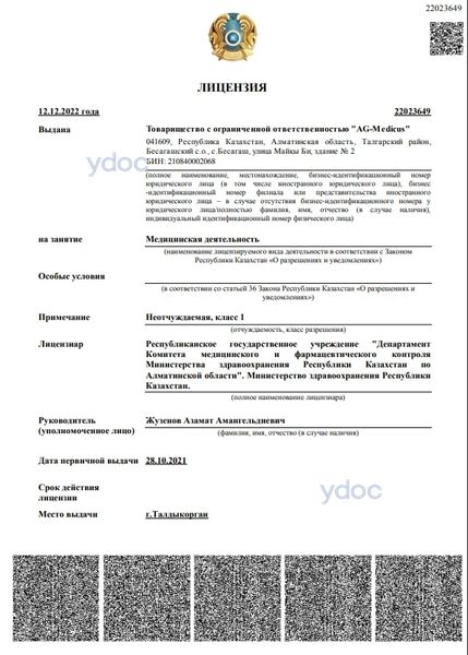 Клиника «AG-Medicus» (АГ-Медикус), Алматы: врачи, отзывы о клинике и ее врачах, телефон, официальный сайт, адрес - Алматы, с. Бесагаш, ул. Майкы Би, д. 2Г.