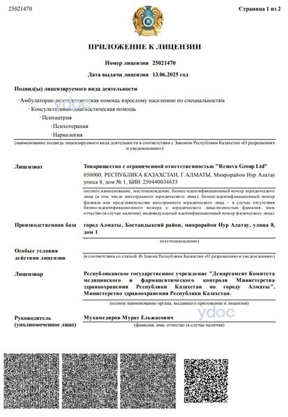 Наркология «Renova clinic» (Ренова клиник), Алматы: врачи, отзывы о клинике и ее врачах, телефон, официальный сайт, адрес - Алматы, ул. 8-я, д. 1.