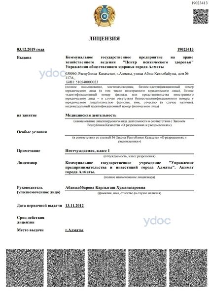 КГП на ПХВ «Центр психического здоровья» УОЗ г. Алматы
