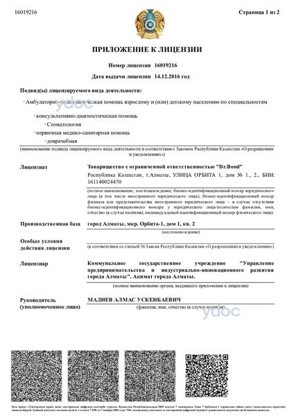Стоматология «Dr. Bond» (Доктор Бонд), Алматы: врачи, отзывы о клинике и ее врачах, телефон, официальный сайт, адрес - Алматы, мкр. Орбита-1, д. 1.