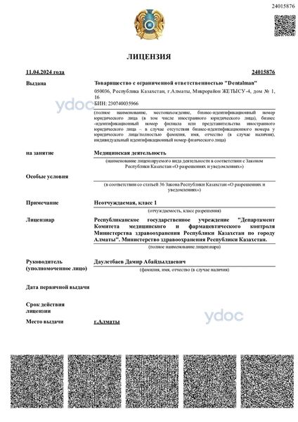 Стоматология «Dentalman» (Дентлмен), Алматы: 1 врач, отзывы о клинике и ее врачах, телефон, официальный сайт, адрес - Алматы, мкр. Жетысу-4, д. 1.
