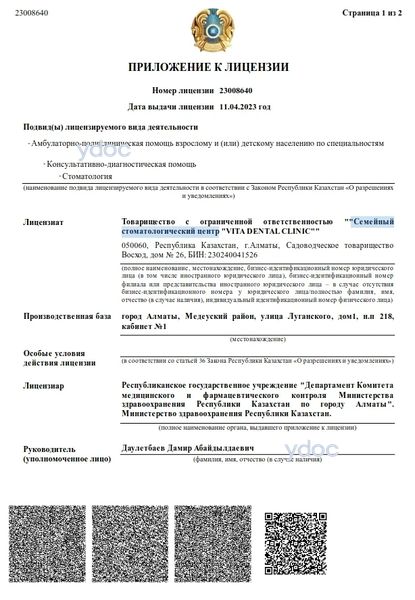 ТОО «Семейный стоматологический центр «Vita Dental Clinic»