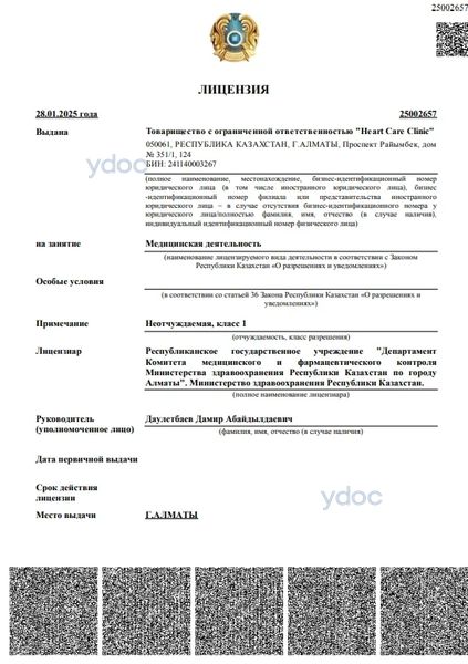 Медицинский центр «Heart Care Clinic», Алматы: 2 врача, отзывы о клинике и ее врачах, телефон, официальный сайт, адрес - Алматы, просп. Райымбека, д. 351/1, корп. 1.