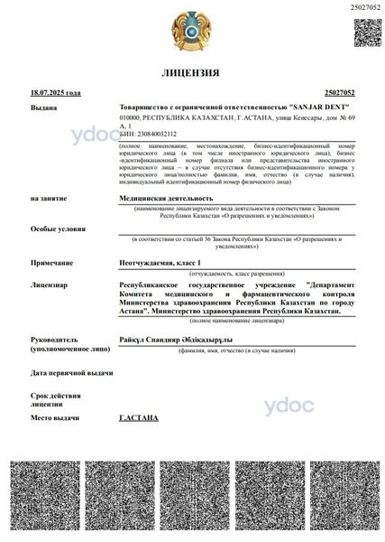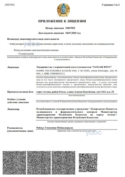 Стоматология «Sanjar» (Санжар) на Кенесары Астана
