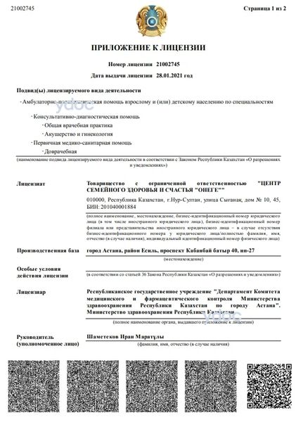 ТОО «Центр семейного здоровья и счастья «Онеге»»