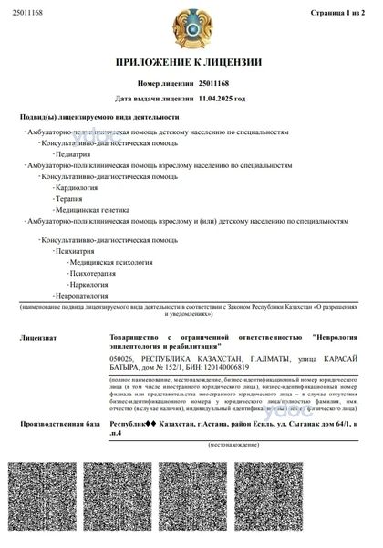 Медицинский центр «NeuroClinic» — медучреждение, предоставляющее услуги в области эпилептологии, неврологии, реабилитации. В клинике принимают опытные врачи. Руководит медорганизацией Лейла Оралгазыевна Даирбаева.