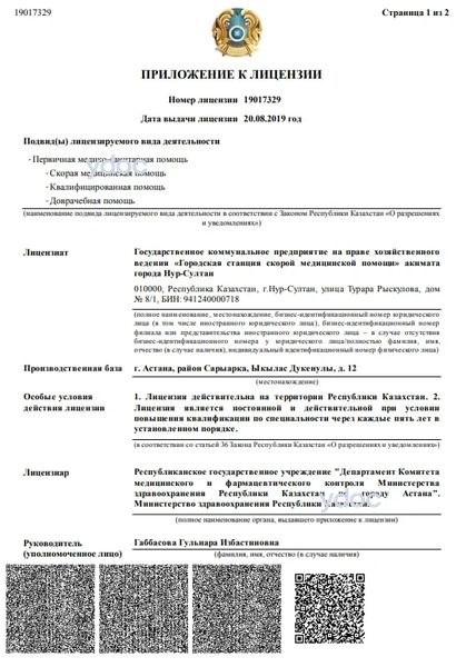 ГКП на ПХВ «Городская станция скорой медицинской помощи» акимата города Нур-Султан