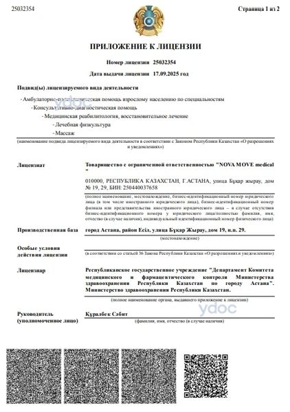 Клиника «Nova Move» (Нова Мув), Астана: врачи, отзывы о клинике и ее врачах, телефон, официальный сайт, адрес - Астана, ул. Бухар Жырау, д. 19.
