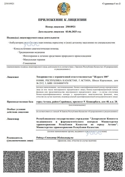 Медицинский центр «Жардем 100» Астана