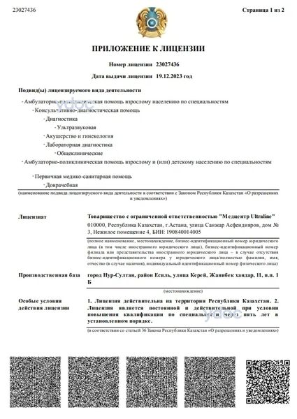 Медицинский центр «Ultraline» на Керей Жанибек Хандар Астана