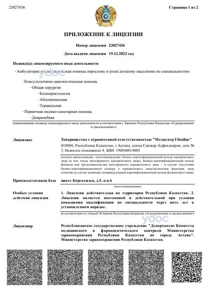 Врачи медицинского центра «Ultraline» на шоссе Коргалжын