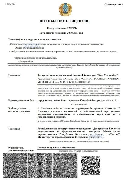 Врачи клиники «Sana Vita» (Сана Вита) на проспекте Кабанбай батыра