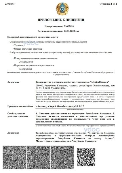 Медицинский центр «Medical Garden» (Медикал Гарден), Астана: 3 врача, 1 отзыв о клинике и ее врачах, телефон, официальный сайт, адрес - Астана, ул. Ханов Керея и Жанибека, д. 2/1.