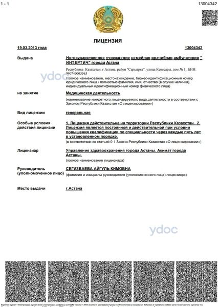 Негосударственное учреждение семейная врачебная амбулатория « ИНТЕРТИЧ» города Астана