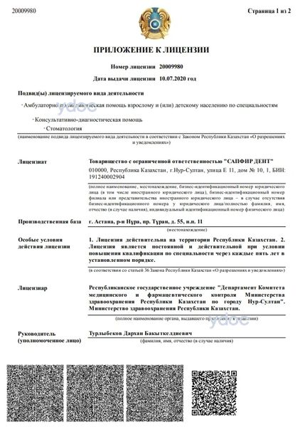 Стоматология «Sapfir Dent» (Сапфир Дент) на проспекте Туран, Астана: 7 врачей, отзывы о клинике и ее врачах, цены от 5000 до 5000 тенге., телефон, официальный сайт, адрес - Астана, просп. Туран, д. 55.