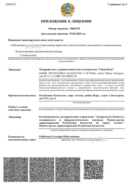 Стоматология «Charm Dent» (Шарм Дент), Астана: 1 врач, отзывы о клинике и ее врачах, телефон, официальный сайт, адрес - Астана, ул. Абикена Бектурова, д. 11/1.