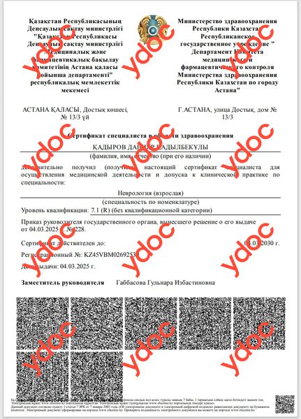 Кадыров Данияр Кадылбекулы, Астана: невролог, реабилитолог, отзывы пациентов, места работы, стаж 9 лет.