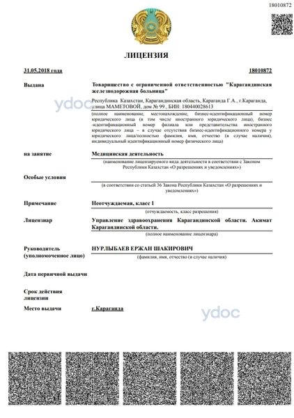 Железнодорожная больница, Караганда: 3 врача, отзывы о клинике и ее врачах, телефон, официальный сайт, адрес - Караганда, ул. Маметовой, д. 99.