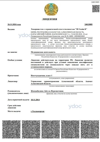 Медицинский центр «ID Senim R» (ИД Сеним Р), Каскелен: врачи, отзывы о клинике и ее врачах, телефон, официальный сайт, адрес - Каскелен, ул. 10 лет Независимости, д. 58.