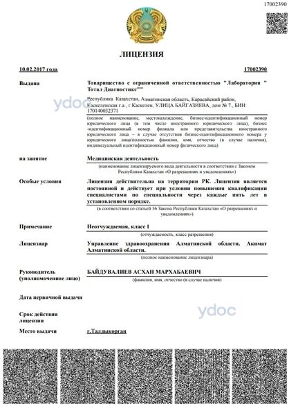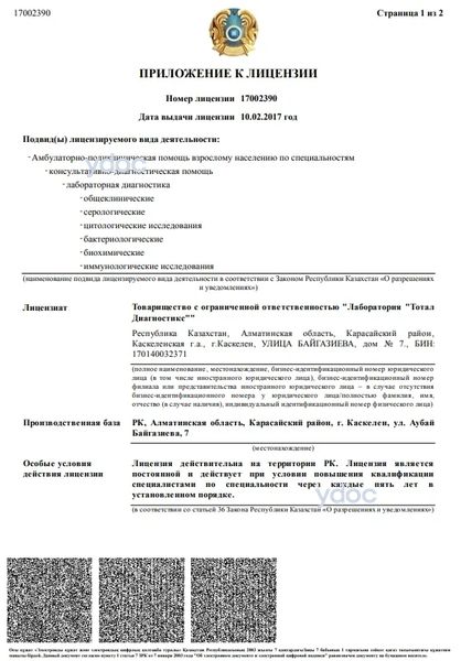 Лаборатория «Total diagnostic» (Тотал Диагностик) Каскелен