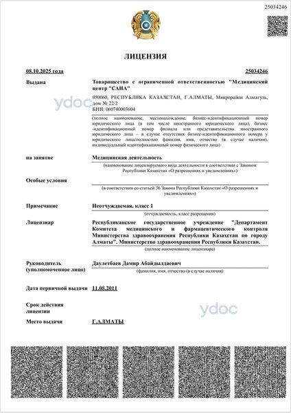 Медицинский центр «Сана», Алматы: 30 дәрігерлер, 44 шолу клиника және оның дәрігерлері туралы, бағалар бастап 1500 дейін 15000 тенге., қабылдауға жазылу +7 705 956-33-55, ресми сайт, мекен-жайы - Алматы, мкр. Алмагуль, д. 22/2.