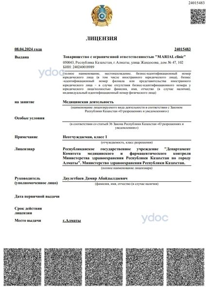 Медицинский центр «Marial clinic» (Мариал клиник), Алматы: 1 дәрігер, пікірлер клиника және оның дәрігерлері туралы, телефон, ресми сайт, мекен-жайы - Алматы, ул. Жандосова, д. 47.