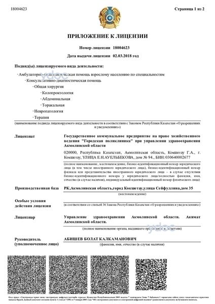 ГКП на ПХВ «Городская поликлиника» при управлении здравоохранения Акмолинской области.