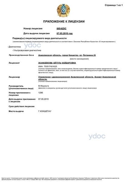 Кабинет врача УЗИ Жанабековой Кокшетау
