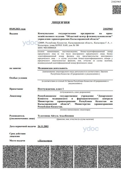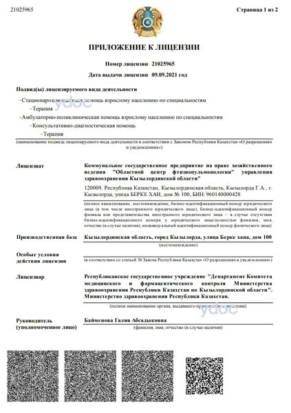 КГП на ПХВ «Областной центр фтизиопульмонологии» УЗ Кызылординской области»