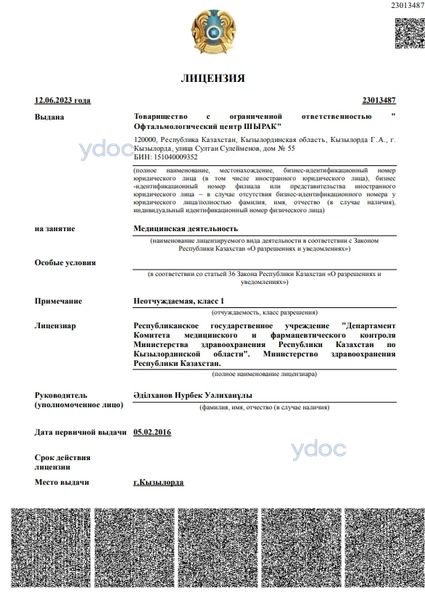 Офтальмологическая клиника «Shyraq», Кызылорда: врачи, отзывы о клинике и ее врачах, телефон, официальный сайт, адрес - Кызылорда, ул. Сулейменова, д. 55.