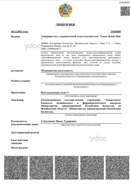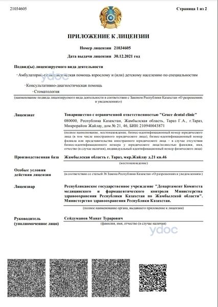 Стоматология «Grace» (Грэйс), Тараз: 1 врач, отзывы о клинике и ее врачах, телефон, официальный сайт, адрес - Тараз, мкр. Жайлау, д. 21.