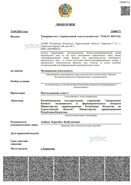 Стоматология «Turan Dental» (Туран Дентал) на Ерубаева Туркестан