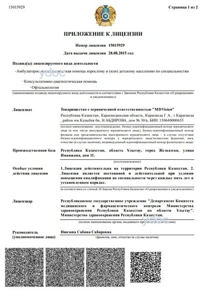 Глазная клиника «MDVision», Жезказган: 1 врач, отзывы о клинике и ее врачах, телефон, официальный сайт, адрес - Жезказган, ул. Иманжана, д. 11.